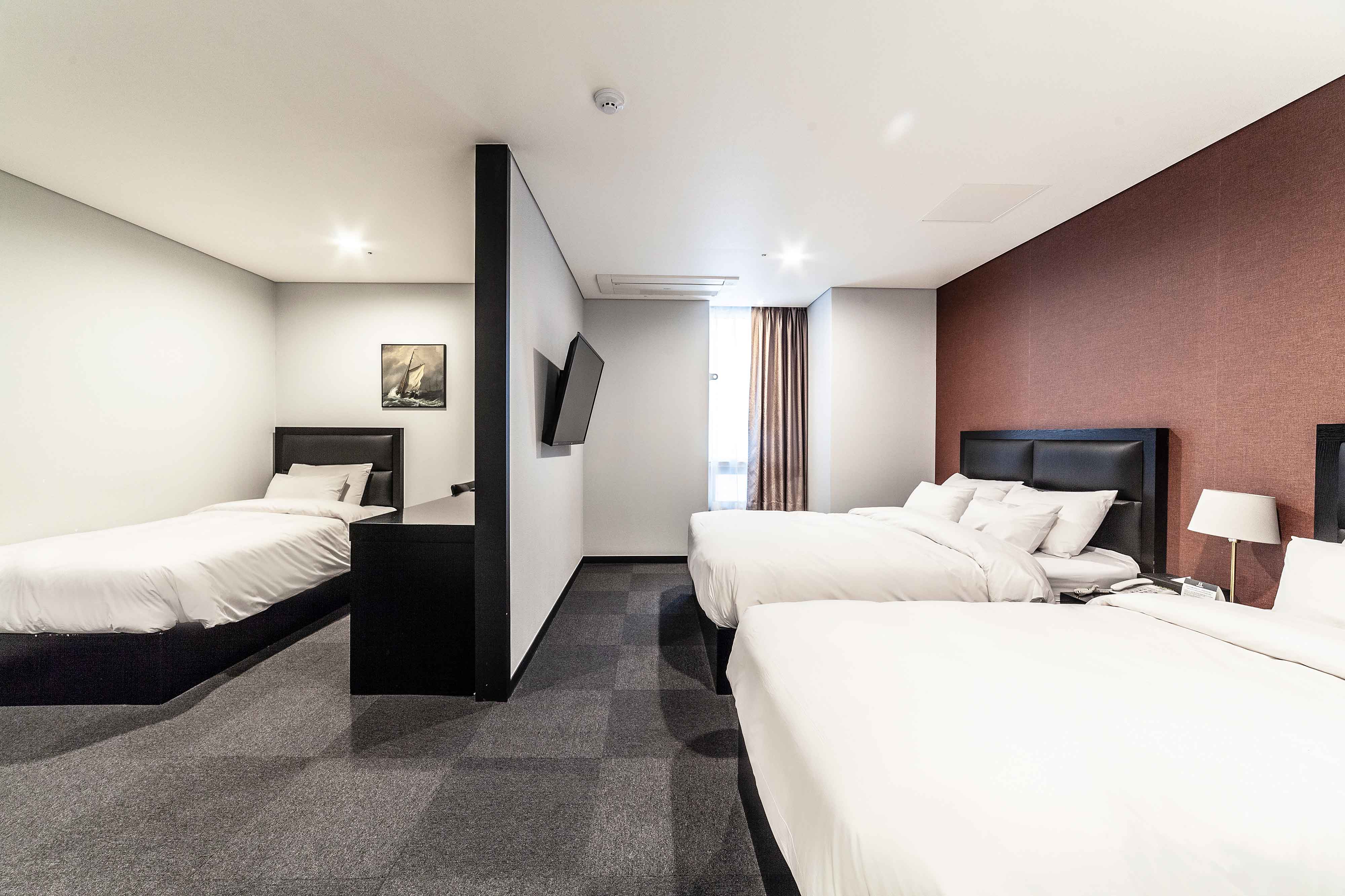 가족 단위 고객이 편안히 묵으실 수 있도록 더블베드와 싱글베드2개가 비치되어 안락하고